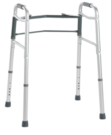 1. A standard walker – most stable walker, user has a slower gait because it must be lifted off the ground during use