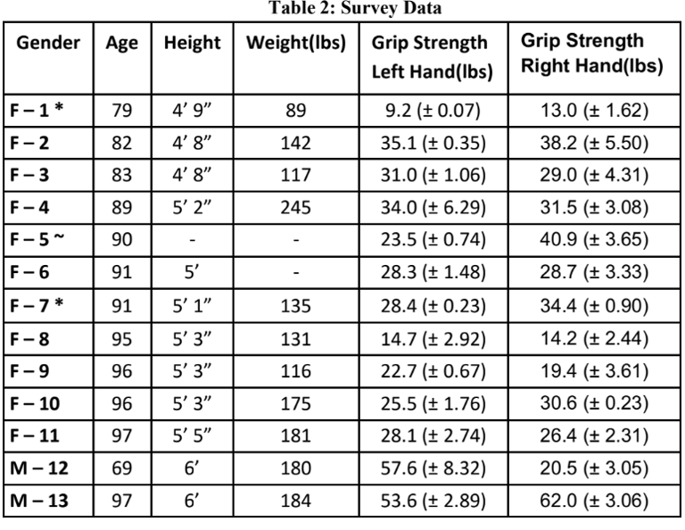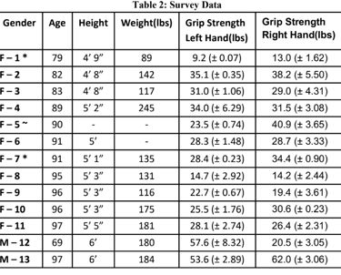 Grip Strength Test: Participants used a grip strength dynamometer, squeezing five times per hand.