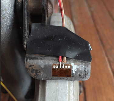 A strain gauge was bonded to each braking lever using MBond 610 adhesive.