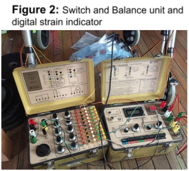 The strain gauge was connected to a P-3500 digital strain indicator via an SB-10 Switch and Balance unit.