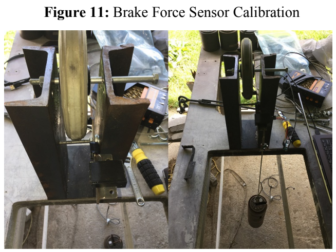 The IMU demonstrated adequate precision, confirming its suitability for ATBS integration. Brake force sensor calibration results were highly precise, and speed sensor calibration showed minimal variation in rotation counts per distance traveled. These findings support the system’s reliability.