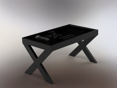 When entering college, I chose to create a second iteration. Optimized for aesthetic and comfort, the second iteration of the computer desk reduced the depth to 5 inches and is made of cherry hardwood with a teak oil finish. The desk features tempered glass with a scissor lift top for easy access to components. Lastly, the desk is paired with a set of standing desk legs for maximum comfort.