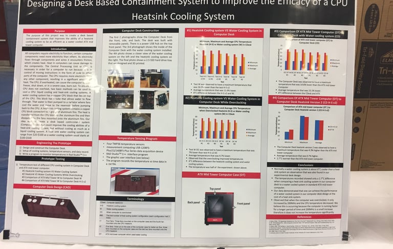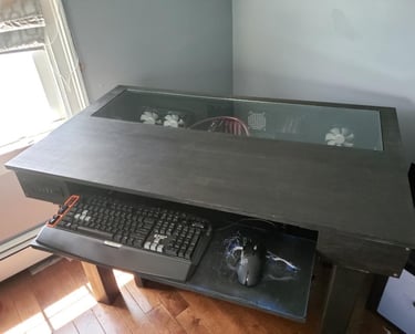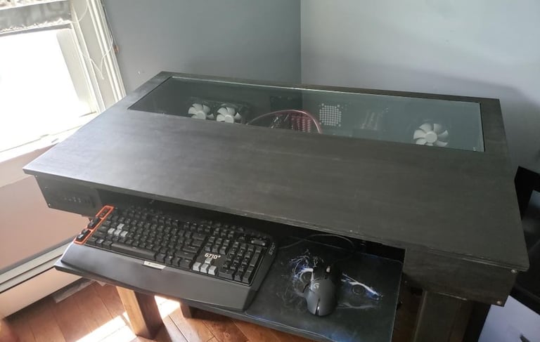 We compared standard ATX Mid tower computer case to the Computer desk by running benchmark testing and recording ambiaent temperatures. The computer desk overall performed better taking with heatsink temperatures resulting in similar thermals to a watercooled AIO solution in the ATX Mid Tower.